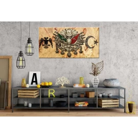 GNS9 Osmanlı Arma Fatih Selçuklu Kartal Ay Yıldız Panoramik Kanvas Tablo