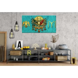 GNS13 Turkuaz Osmanlı Arma Kayı Selçuklu Kartal Panoramik Kanvas Tablo