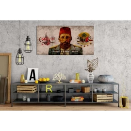GNS24 Abdulhamit Han Tuğra Osmanlı Arma Panoramik Kanvas Tablo