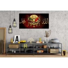 GNS8 Osmanlı Arma Allah Muhammed Kırmızı Panoramik Kanvas Tablo